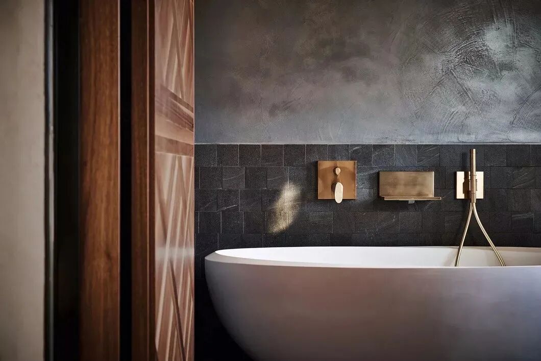 凹凸不平的墙面制造出的斑驳感加上光洁的圆形浴缸,设计感很强,这种满是复古与现代的格调,是时下很时髦的方式之一。