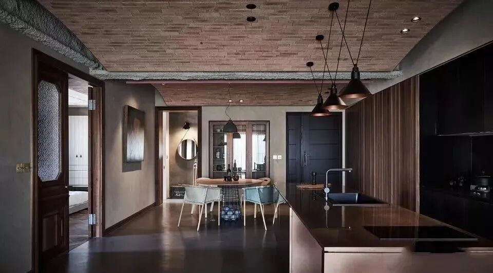 “解构式”的设计将过低的钢梁与天花分开,天花以弧形的手法将空间提高。而弧形的低点便能配置厚实的设备。这样新颖的设计理念,让彼此能独立的发挥材质的不同功能。