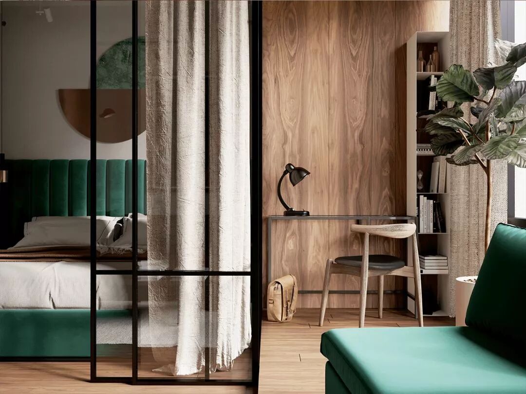 黑胡桃木地板+翡翠绿