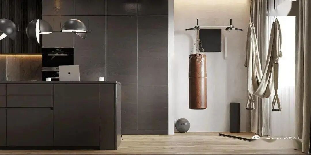训练区与开放式厨房恰到好处地融为一体,