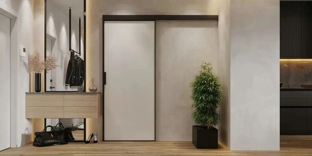 玄关的设计是水泥灰极简,