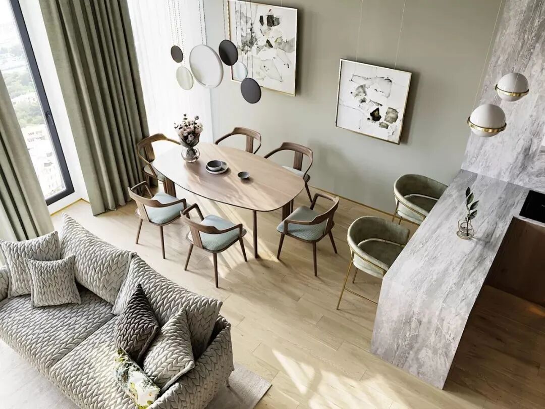 开放式的布局让所有功能区的连接十分紧密,充沛的光线在无形中起到了放大空间的作用,柔和的色彩下,家具的利落线条显得十分轻盈……
