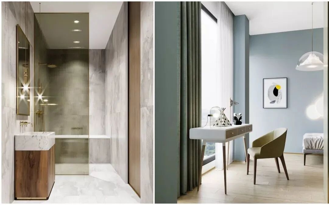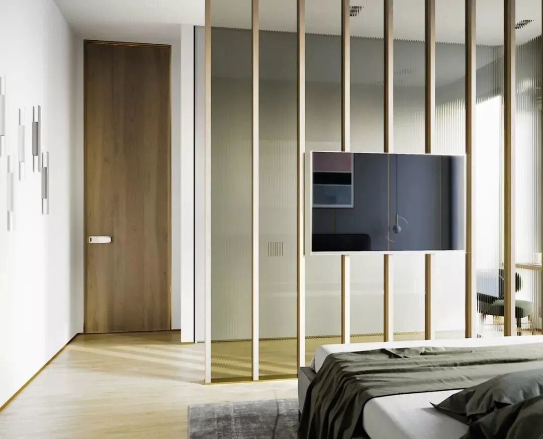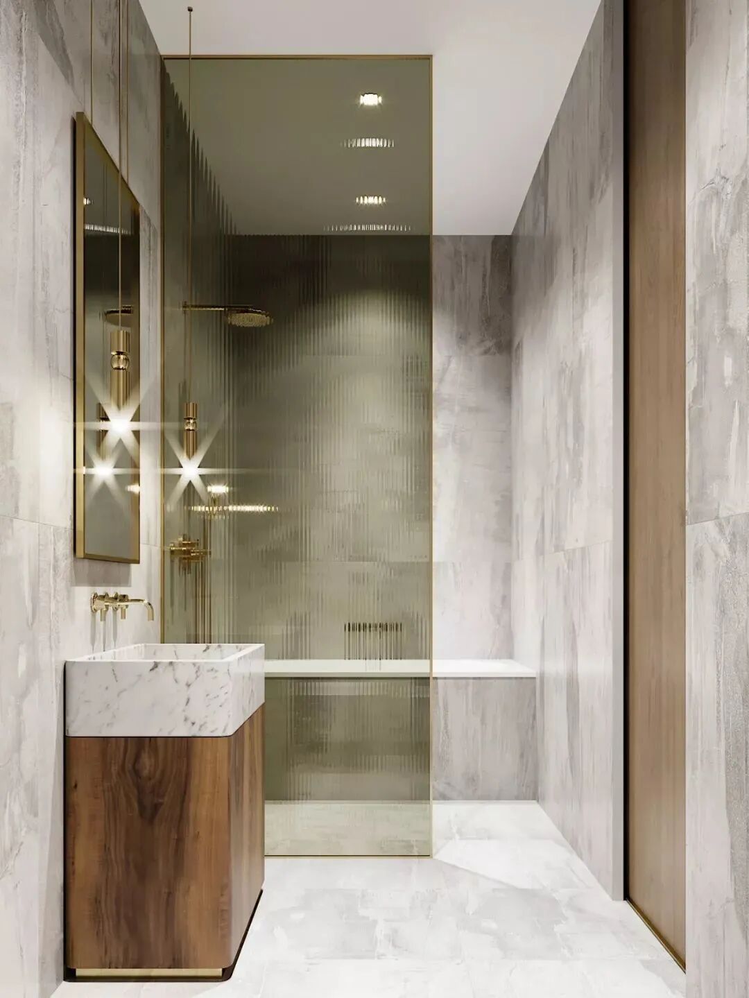 主卫空间以一扇玻璃作为干湿分离的隔断,通透而独具艺术美感。
