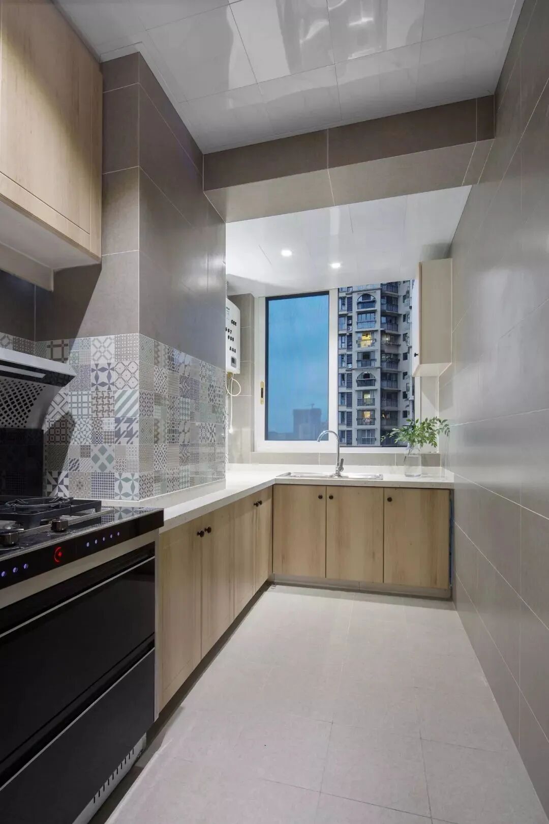 厨房水泥瓷砖的通体铺贴,让这个做饭空间多了一份冷静与内敛,与木质的橱柜搭配,让很多人年轻人深深地沉迷,爱恋。