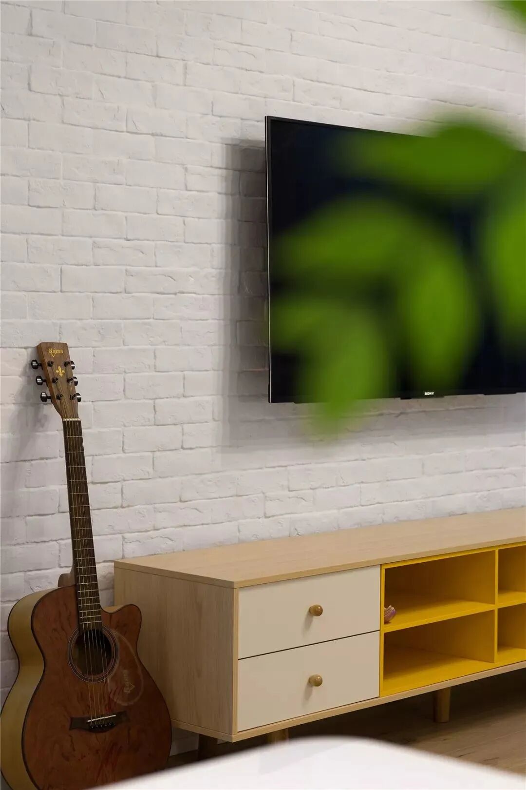 客厅电视墙的隐形门也是空间一大亮点,又是门又是背景,很有设计感。