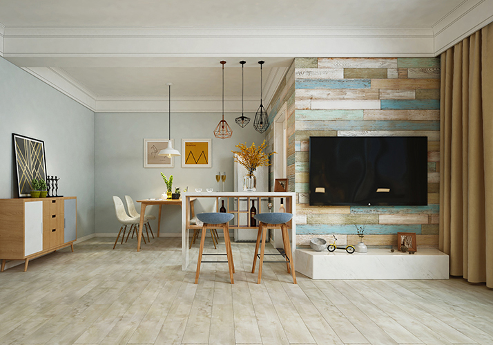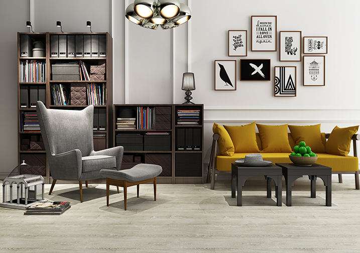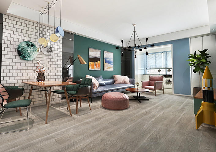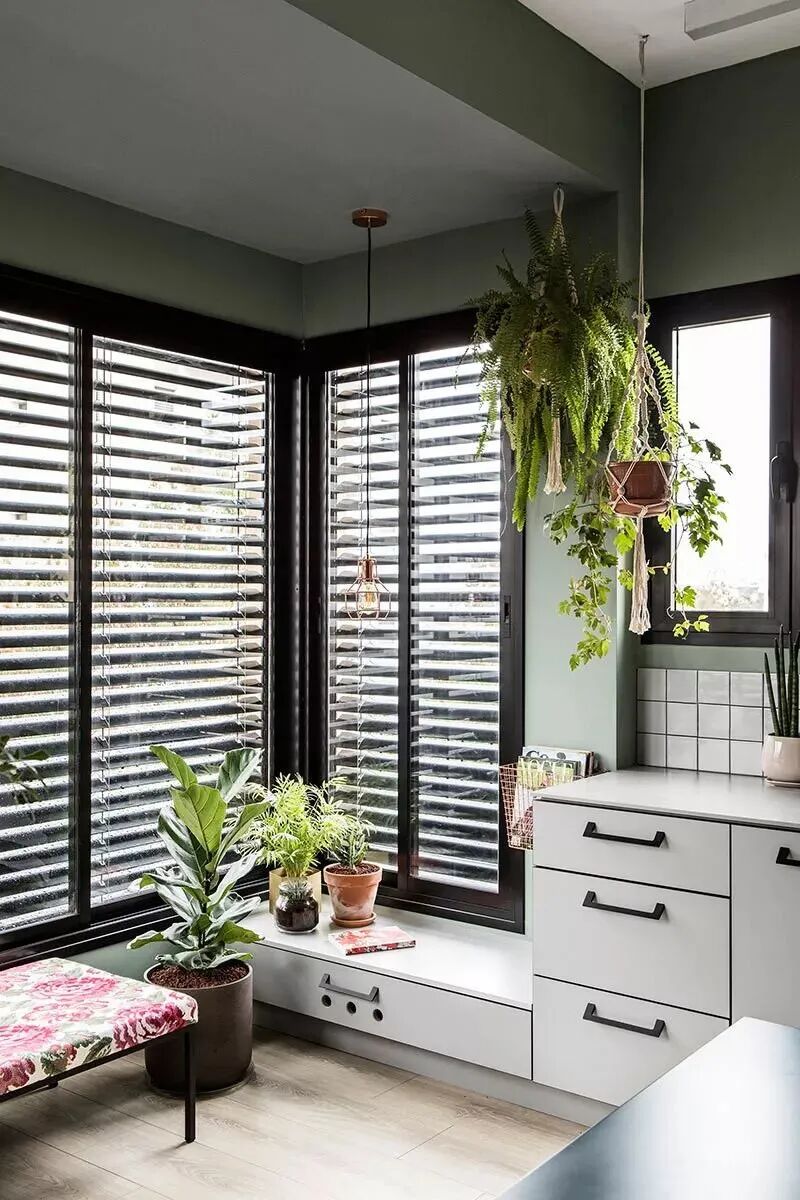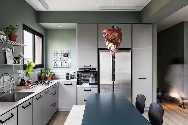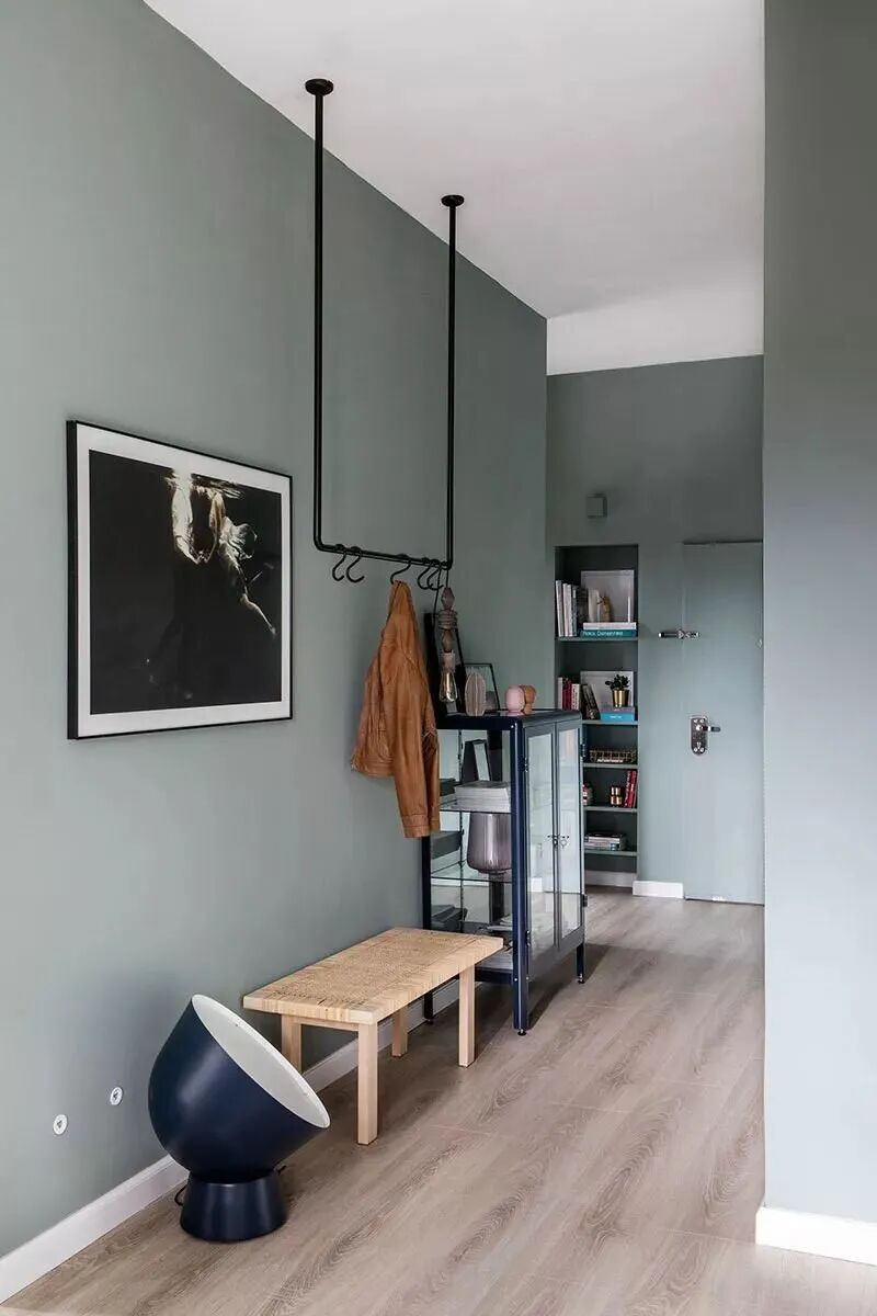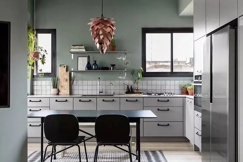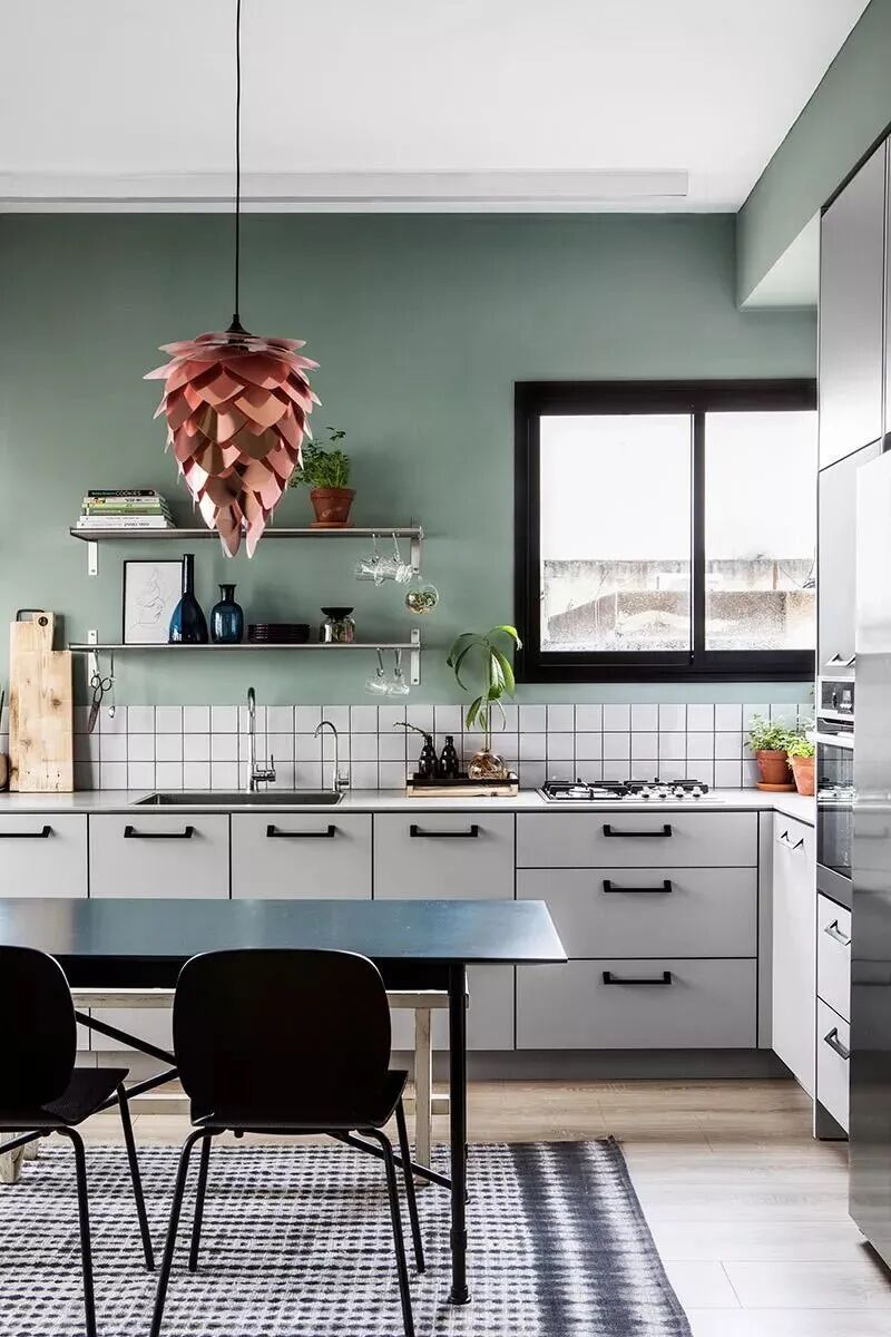 这间现代化公寓为例,我们可以看到墙壁上精心挑选的绿色色调看起来非常清新而高级。就其本身而言,色彩已经在一个房间中创造出了一种情绪,只有通过添加焦点,就能获得一处美妙的生活空间。而浅灰色地板的纳入更是为整个空间加分不少,治愈感油然而生!