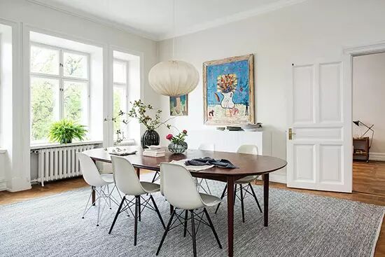 细腿儿餐桌和椅子,让原本的餐厅敞亮清新,曲线设计让人的心不由地柔软下来,好好享受一顿与家人的午餐。