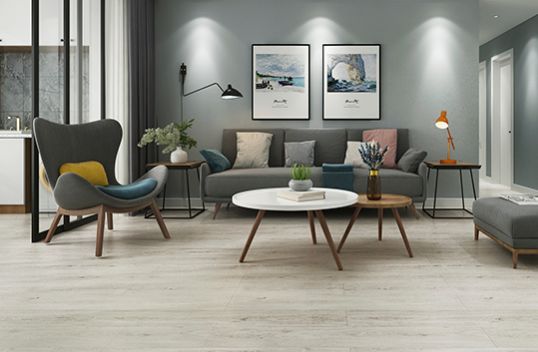 宽敞的客厅带点弧形线条,搭配温润的原木茶几,空间更显亲和。阳光透过三扇窗户,洒落客厅,墙上的艺术装饰画,亮眼却不浮夸。