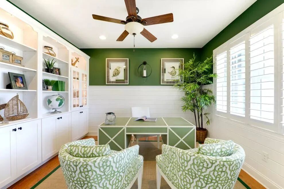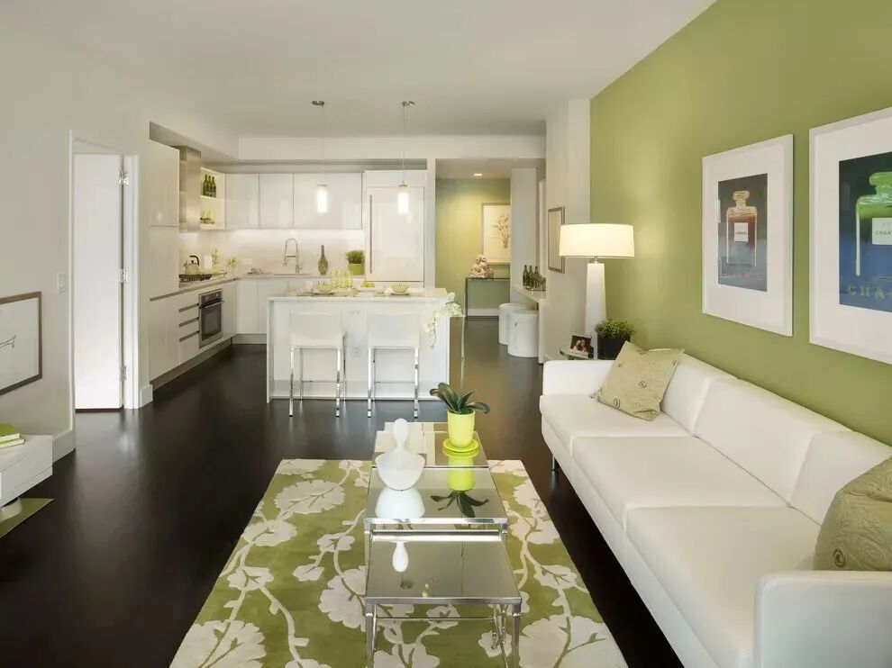 厌倦了单调的深色,给空间加上一抹蓬勃的抹茶绿,好似地板长出一块绿色草地,让人心旷神怡。