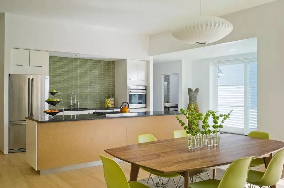 抹茶绿与木地板搭配,效果简直不要更赞~