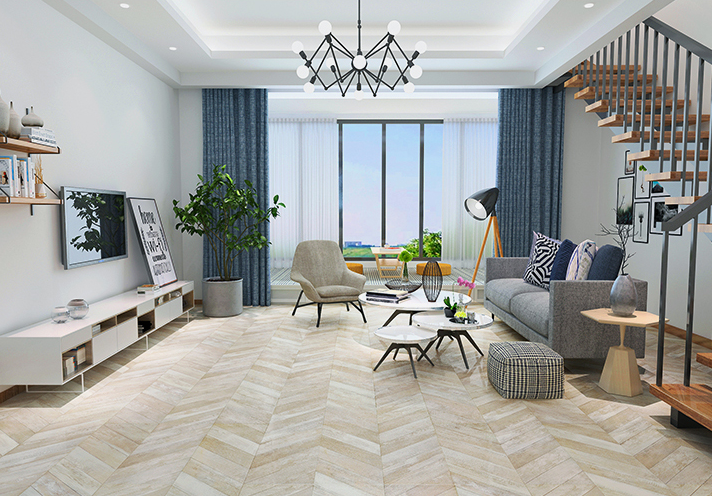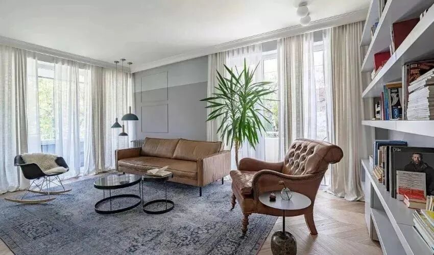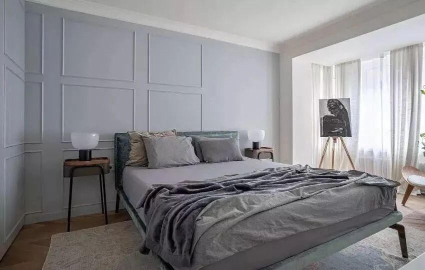 雾霾蓝灰的颜色与餐椅、橱柜门呼应,