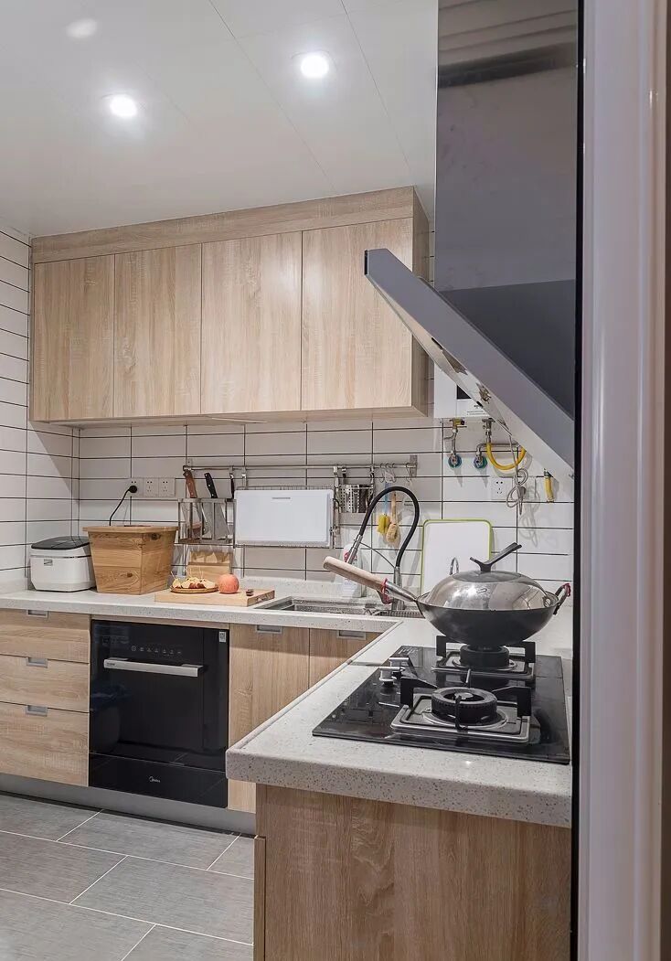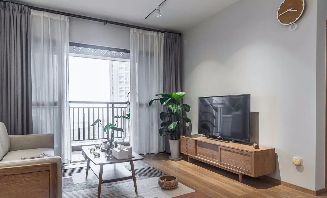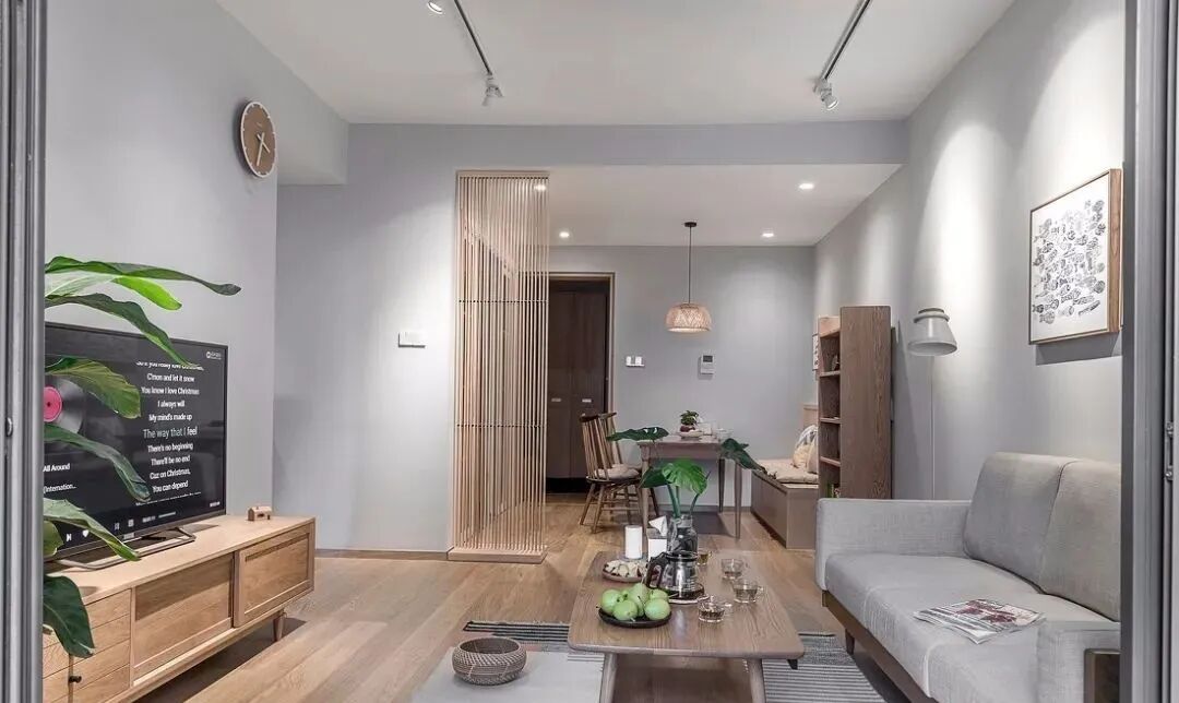 ▲ 整个客厅的空间,没有多余的家居摆设,浅木色与灰白色搭配,纯木质的家具,使生活回归自然,清新淡雅。