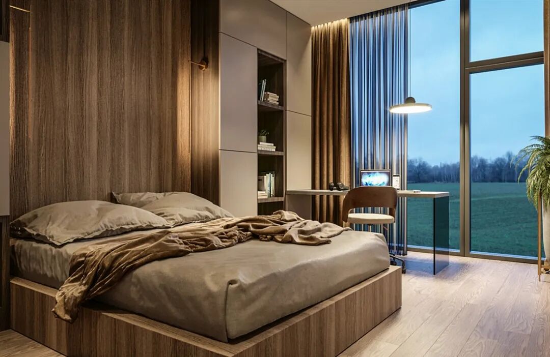 日之夕矣,鸟倦归栖,而人亦如此。卧室作为最终的休憩之地,与木地板的搭配,既保留了自然的纯粹特质,又为这一私密空间增添了更多的温度,简单、雅致、舒缓,一木一景,应运而生,精妙绝伦。