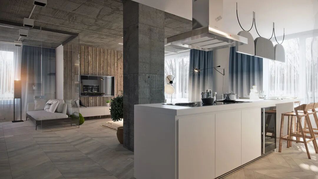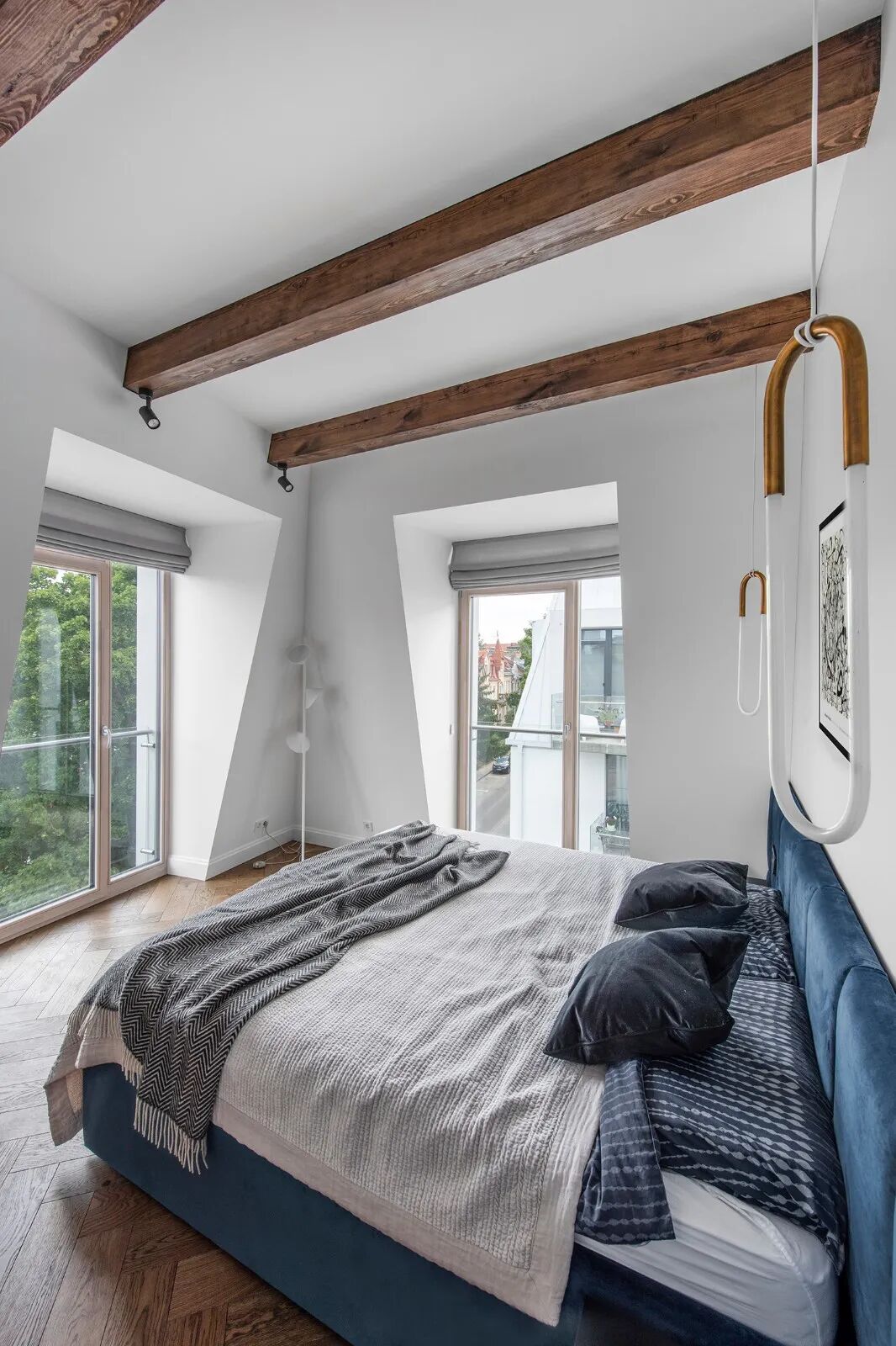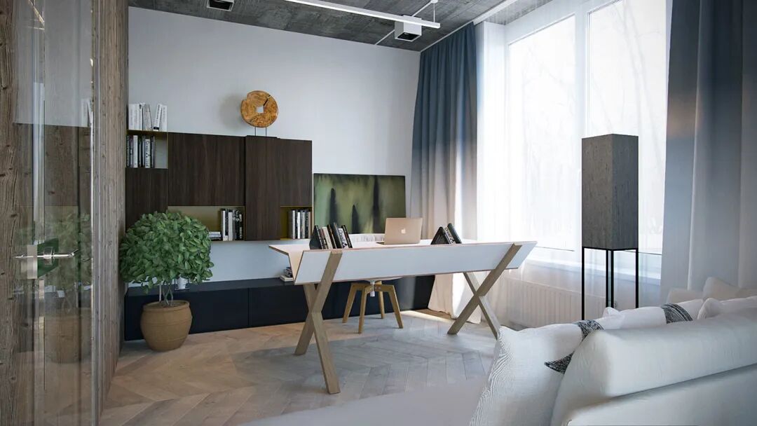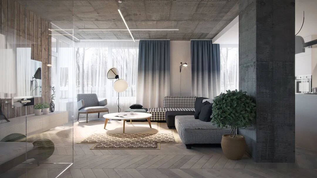 拂晓与黄昏,昼夜交替的风景与光影,穿过玻璃窗,衬着纵横交错的人字拼木地板,氤氲着满室的风华,尽显木质的清雅和高级美感。
