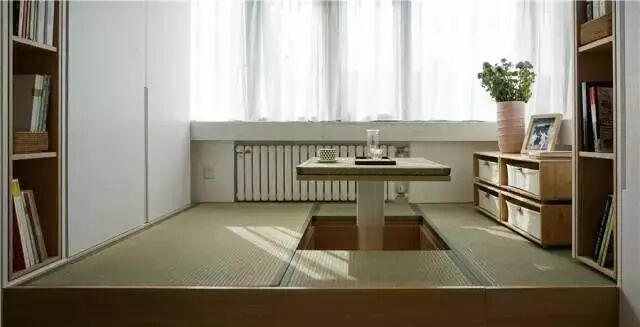 有设计师将木地板与地台的概念结合起来,去掉草编的那层,表面铺上木地板,不仅拥有着地台原先“冬暖夏凉,贴近自然,绿色无害”的优点,还能解决其所显露的问题。