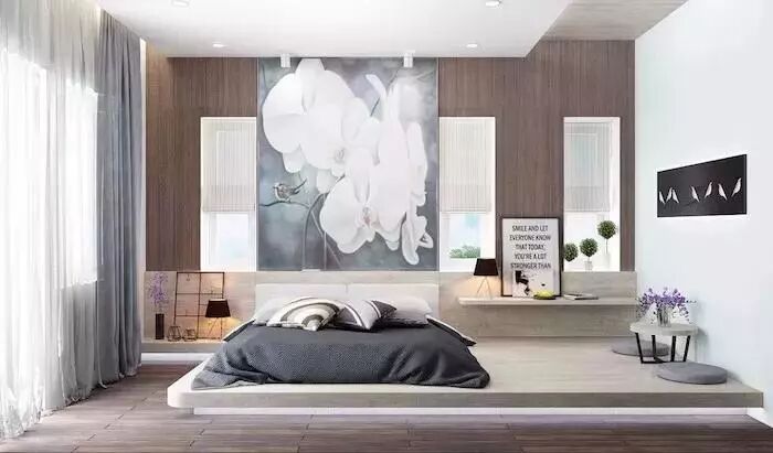 作为家中常用的地面铺装材料,地板在地台上的运用,还能与家中的地板颜色、材质统一起来,形成美观良好的视觉感受。