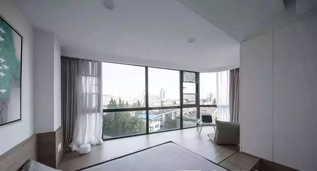 ▲实景案例,次卧使用地板,将整个房间打造成大型的休闲区域,床与地台相结合,可满足丰富的收纳需求。没有使用草编垫子,而是直接选用木地板。温和舒适的木地板冬暖夏凉,能席地而坐,感受窗外美景。