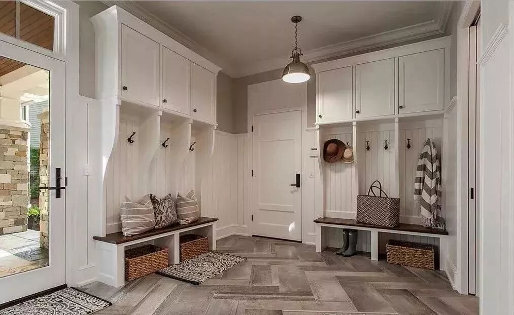 针对不同的玄关采用不同的地板及铺装法,让人走进大门一看,就能看到漂亮又大气的玄关。