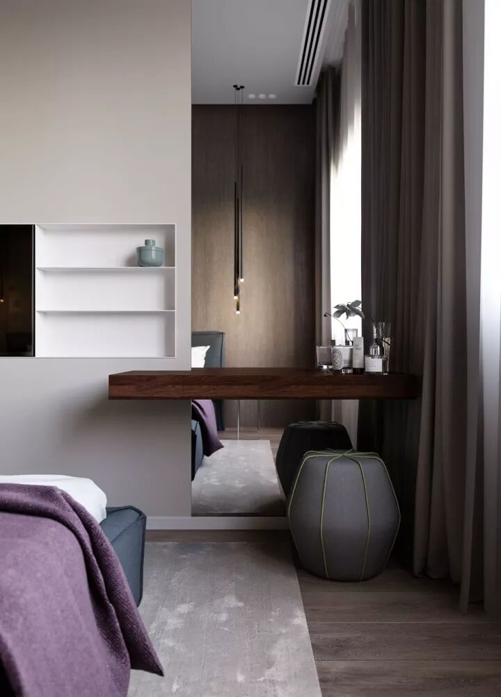 既有典雅的气质,也有个性。在设计中通过不同的材料满足不同的功能,却让每个空间都有统一的格调。木色与灰色的家具是很好的过渡调和,让一切更加和谐。