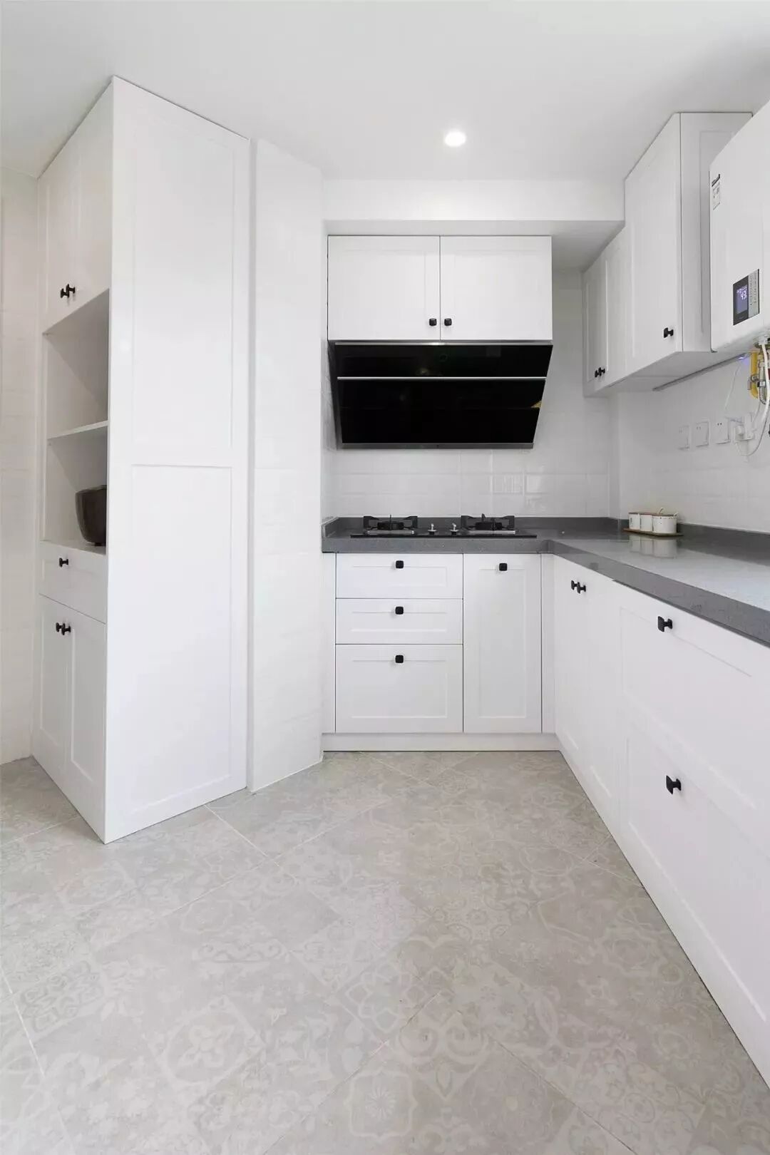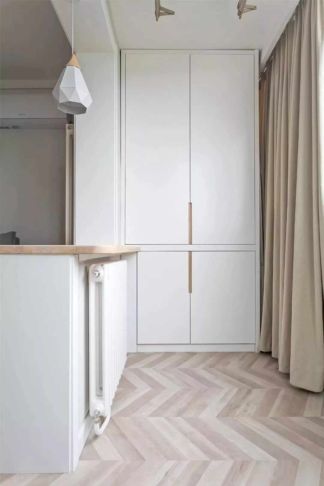▲ 利用厨房进门左侧的空档位置设计了一个电器高柜,增大储物功能。