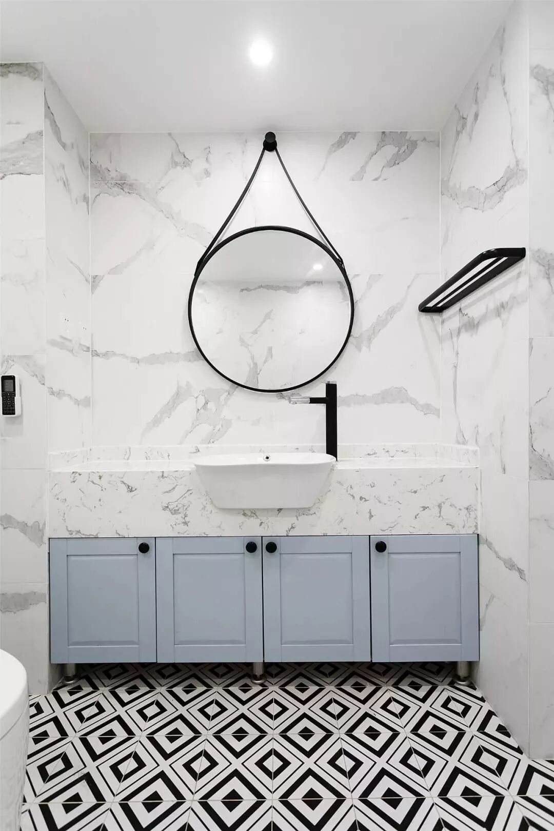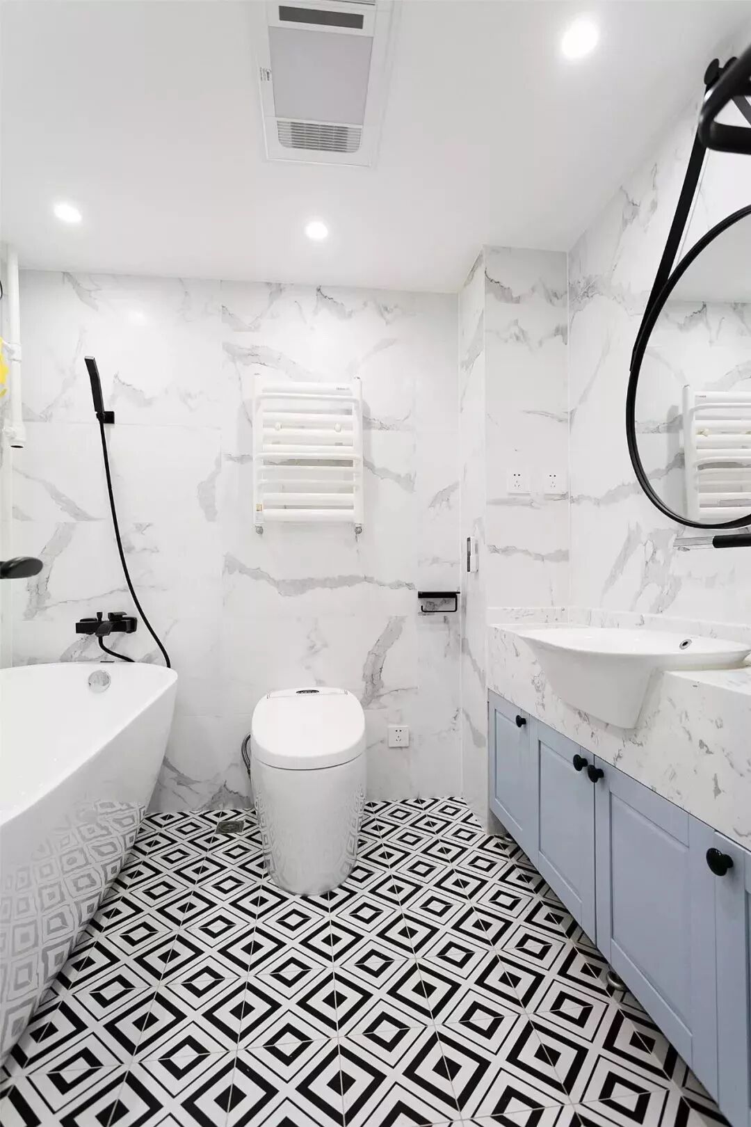 ▲ 主卫以黑白两色为基调,局部加入灰蓝色,整体明快简约。