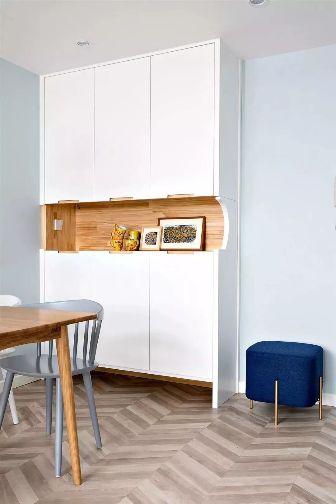 ▲ 餐边柜兼具玄关柜的功能,中部留空方便放些摆件及常用物品。