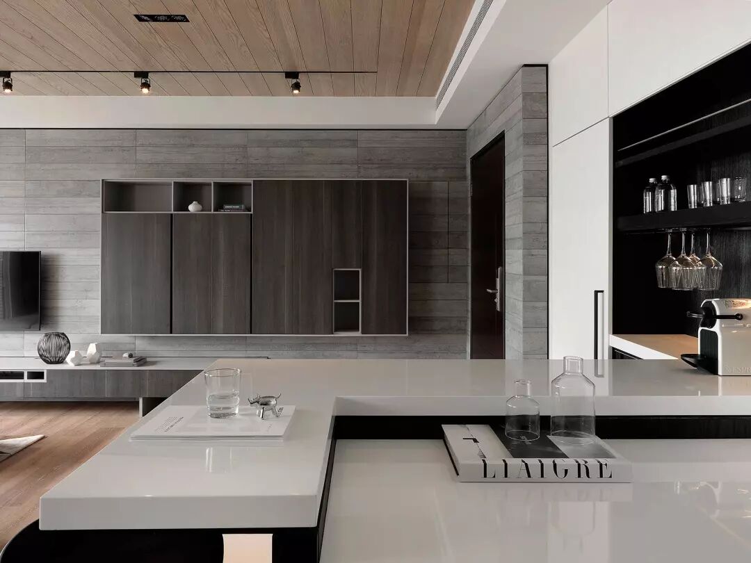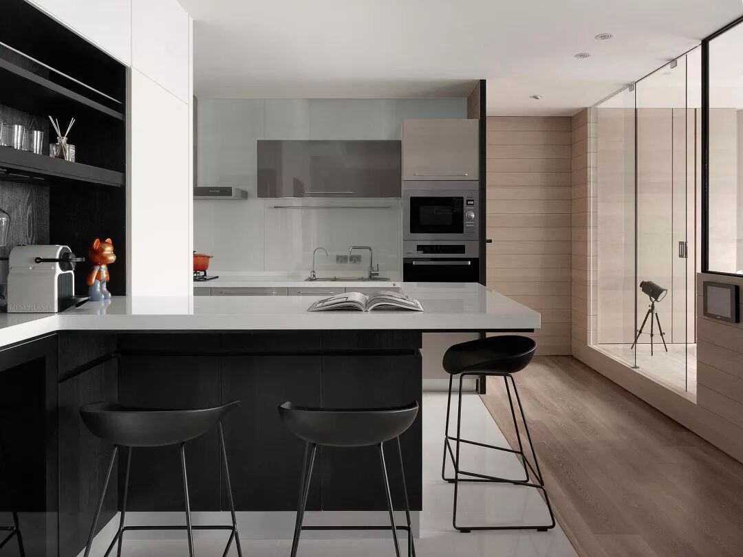 厨房以黑白色为主色调,经典的搭配色,轻松自在。