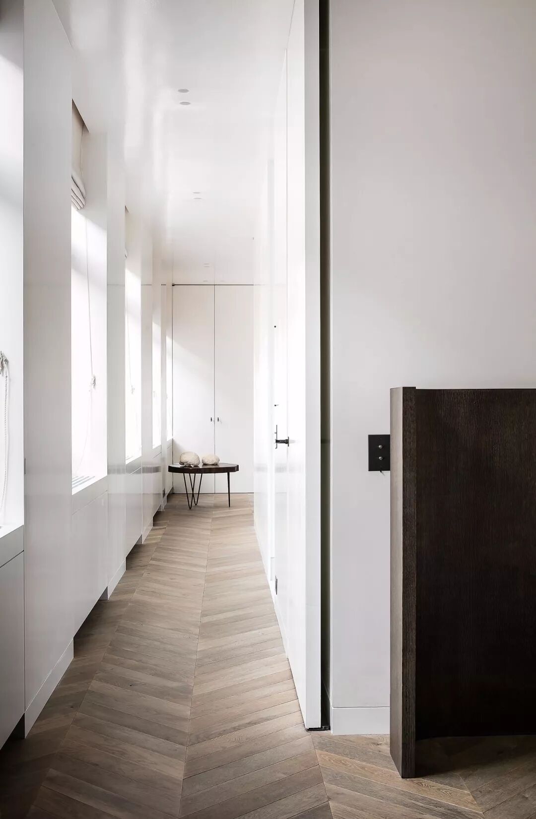 极简主义在建筑上的运用要比家装多很多,所以不少擅长这种风格的设计师都是建筑设计出身,建筑师打造出的家,非常在乎空间结构。运用硬朗、冷峻的直线条,力求从视觉感官上体现简约、纯粹、高雅、时尚的风格。许多极简空间的设计,无论是家具、地面、墙面,几乎全部采用90°直线条造型。