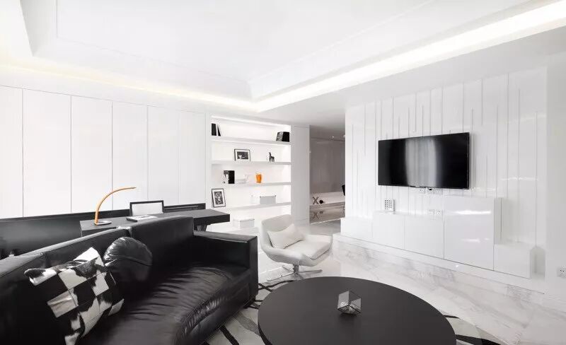 极简主义室内设计非常重视各种材料与色调的选取和运用,极简主义中大多以浅色系为主,比如黑、白、灰,但为了提亮空间,会局部少量运用到夸张强烈的高彩度颜色,墙体是体现风格的重要元素之一。白色的清新与淡雅会让人产生丰富而细腻的审美体验。越是简单的色彩,越能贴合人的内心。