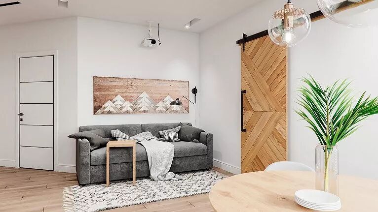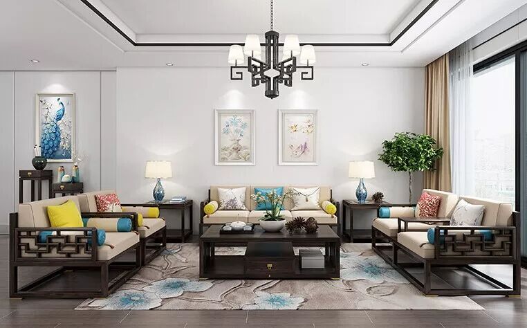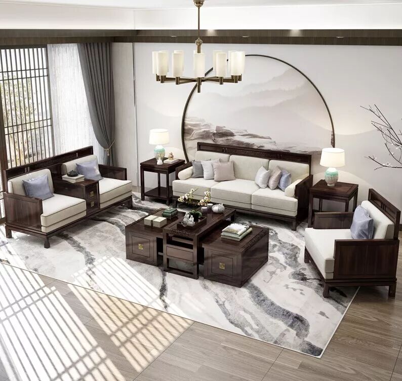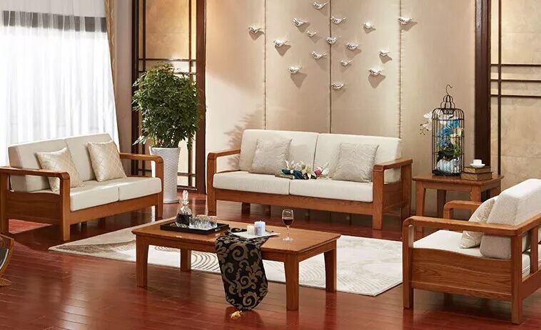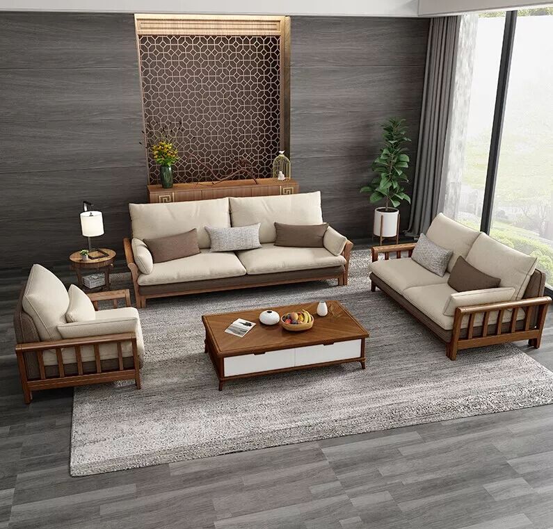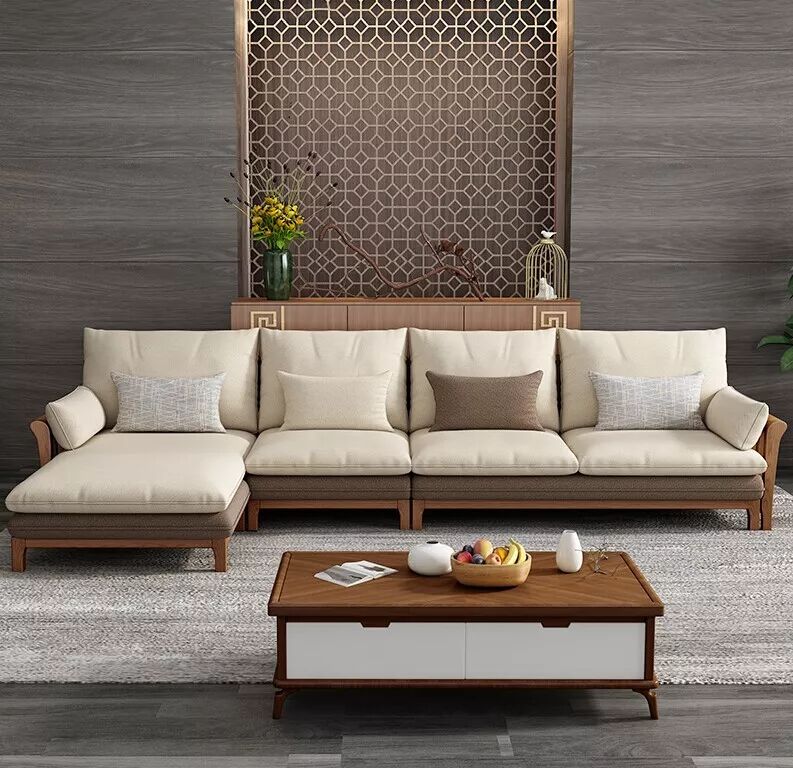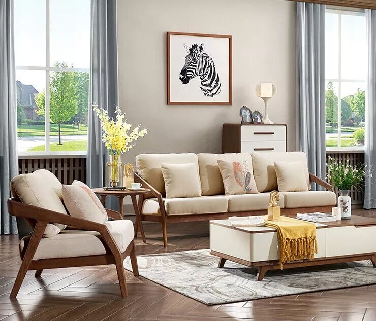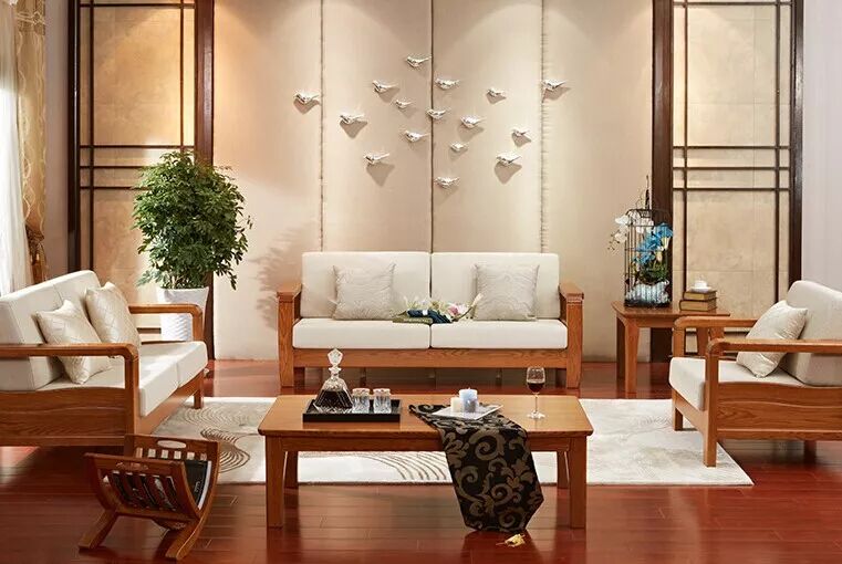 米色沙发与实木的结合