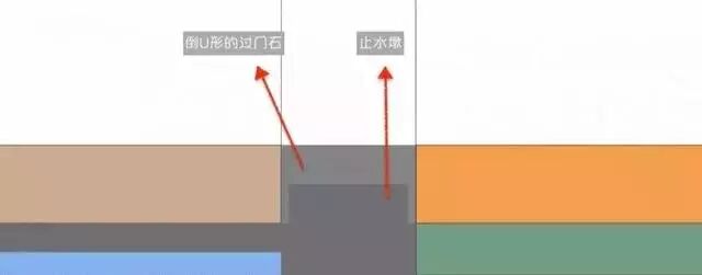 用水泥砂浆或防水砂浆做一个高于地面1-2cm的止水坎,不能太高。因为上面要放门槛石,太高的止水坎会让地面有高度差。