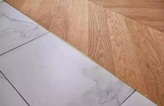 瓷砖与瓷砖之间的过渡,一般选择石材。大理石、花岗岩、瓷砖都是常用到的石材,其中,黑色的花岗岩(黑金砂)是最常用的。