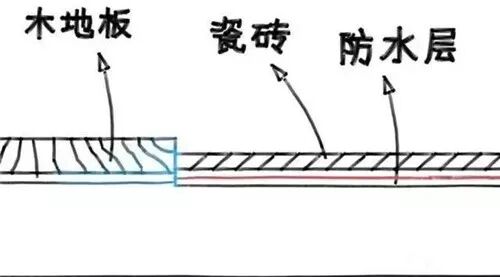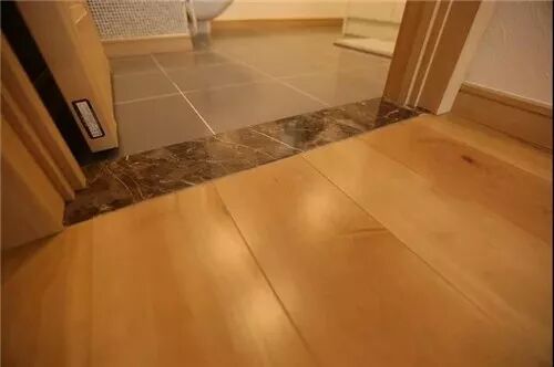 一边瓷砖一边地板,一般的施工顺序是先地砖再地板,两边有高度差是常有的事。