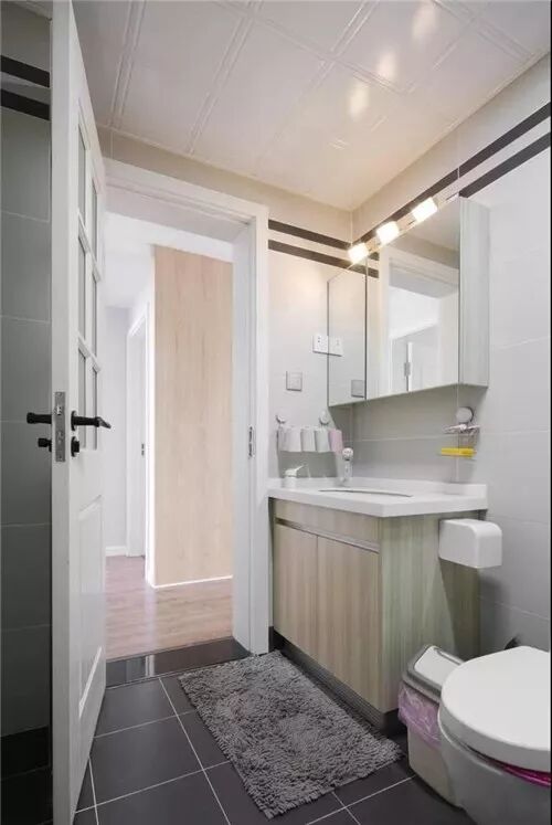 卫生间的门槛石,除了过渡作用,还有一个挡水条的作用,一般会比卫生间内高一点,可以对卫生间内的水有一定的防溢水作用。