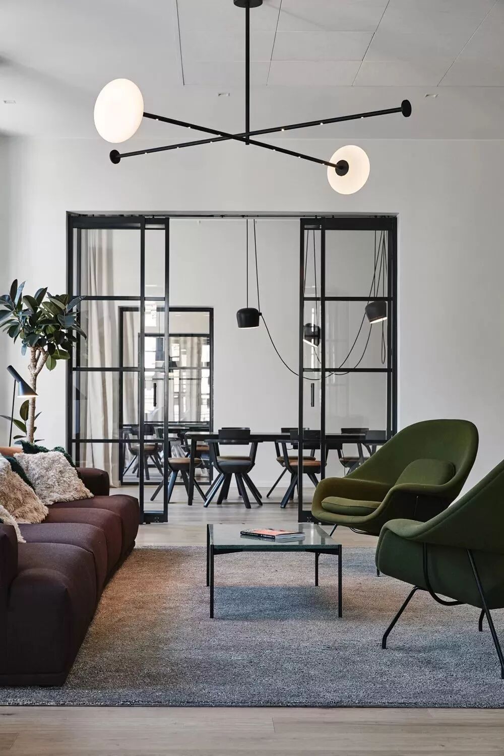 因为镁铝合金的强度不够,边框不能做太细,需要保证有一定的格子,否则无法支撑住玻璃的重量,所以我们看到的铝镁合金门大多都是小格细框的,很有特色。
