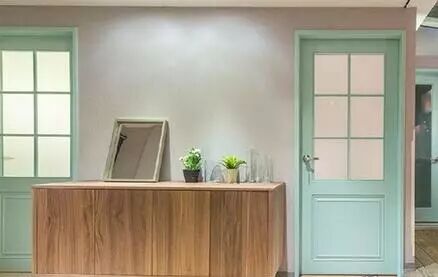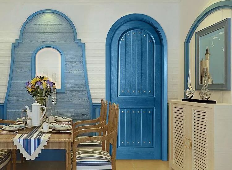 这个感觉就更明显了,不仅木门的颜色可以选择蓝色来搭配,就连样式都可以不拘一格,可以做装饰门。