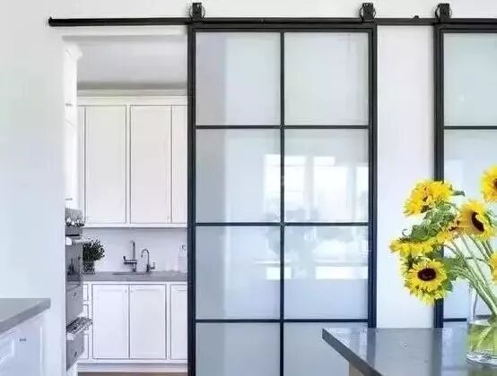 另外还有一个问题,如果门套或者踢脚线比较厚的话,要单独配加长的五金件,所以装谷仓门,一般可以不做门套,还省了门套钱。