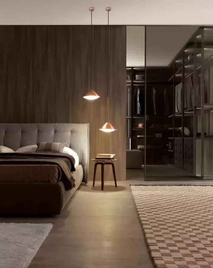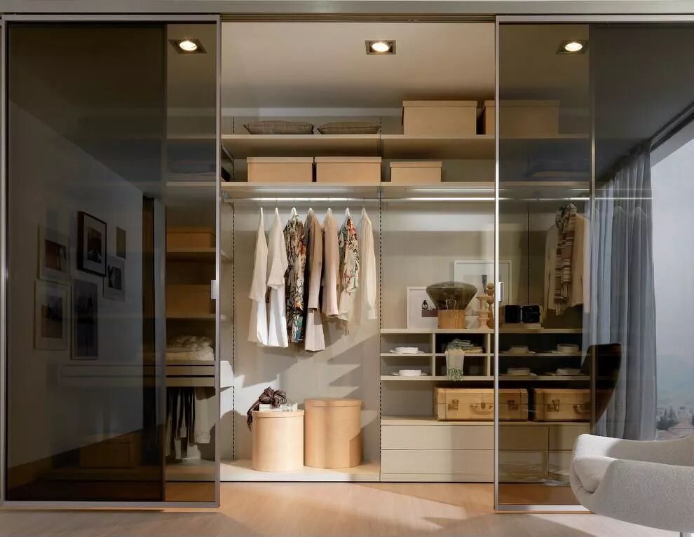 磨砂玻璃能够创造朦胧美,同时它能够极好的隐藏起衣柜内部,保留了主人更多的隐私。