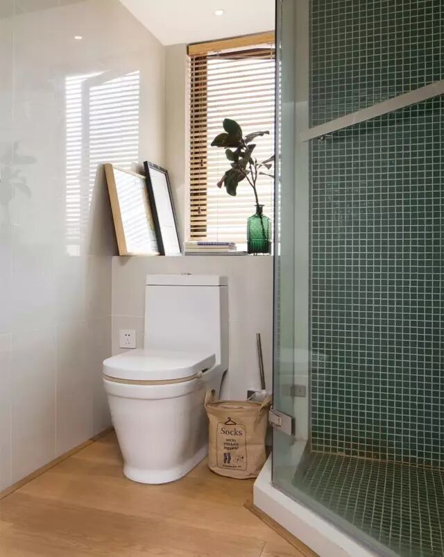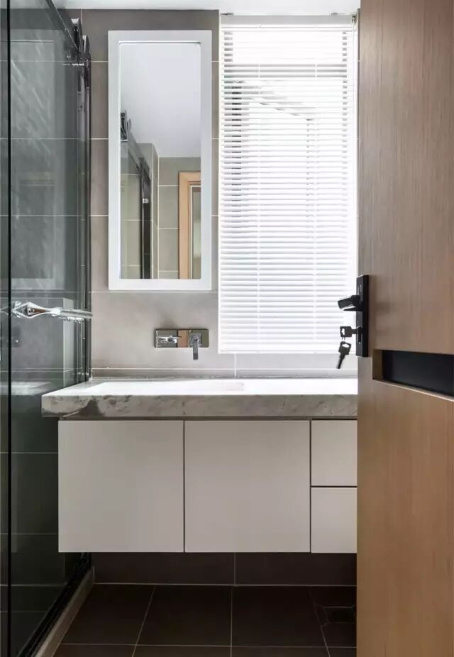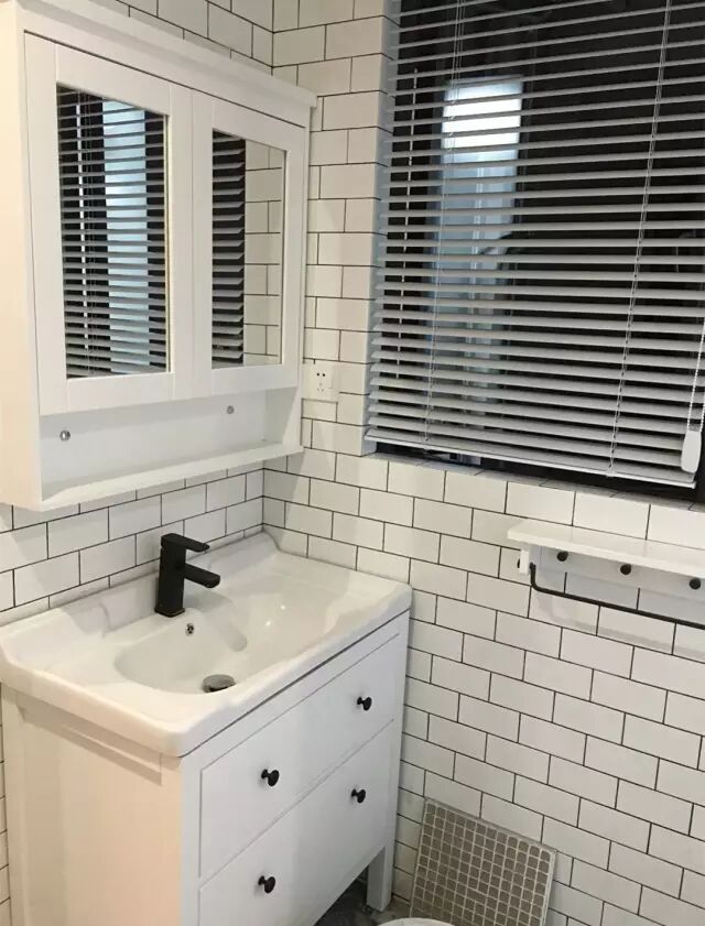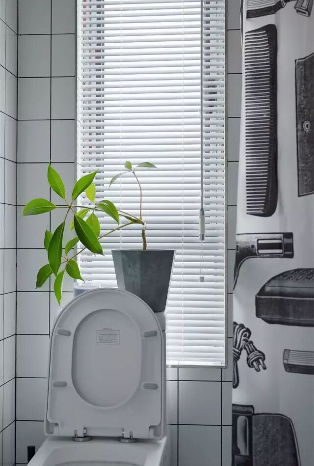装百叶还有一个好处,就是窗户边沿的空间不会被窗帘影响,上边宽度足够的话还可以摆绿植或卫浴用品。