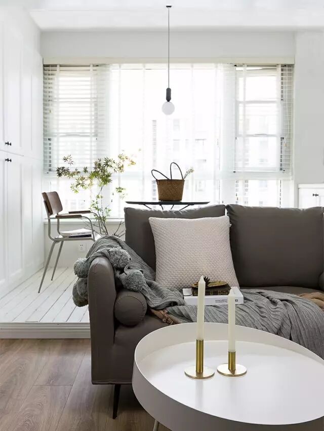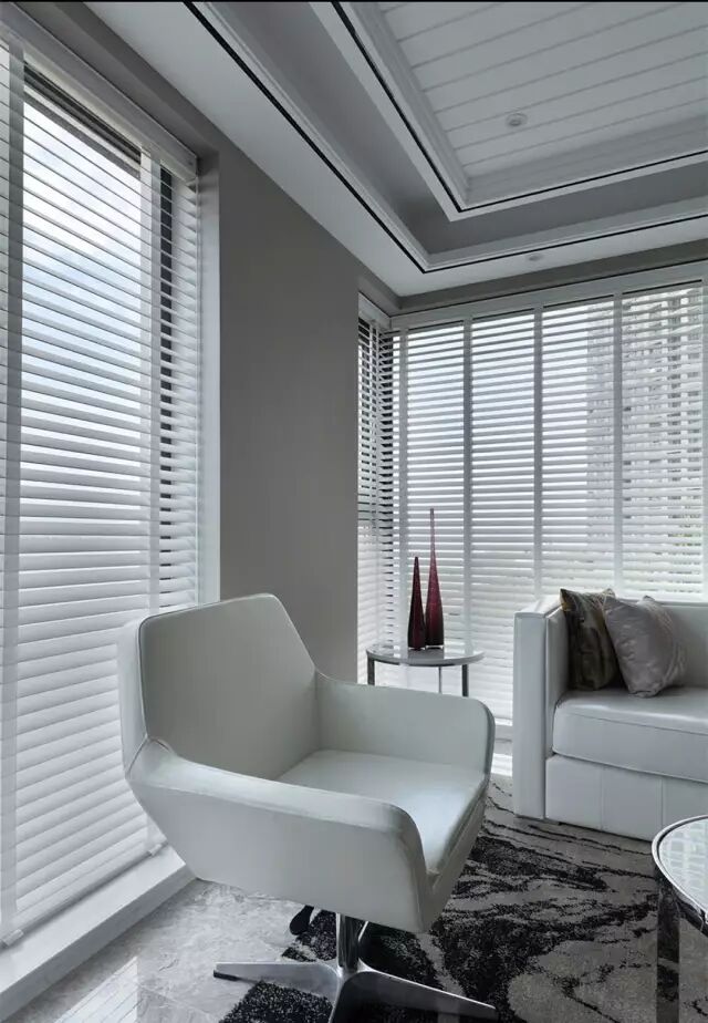 客厅作为接待客人、日常家人休闲方式的公共空间,门窗一般都比较大;如果遇上没阳台的客厅,客厅直接就靠着一面落地窗的,那么装百叶还是比较整洁大方的,没有窗帘垂着的那种拖沓的视觉感。