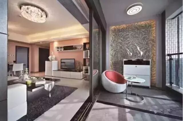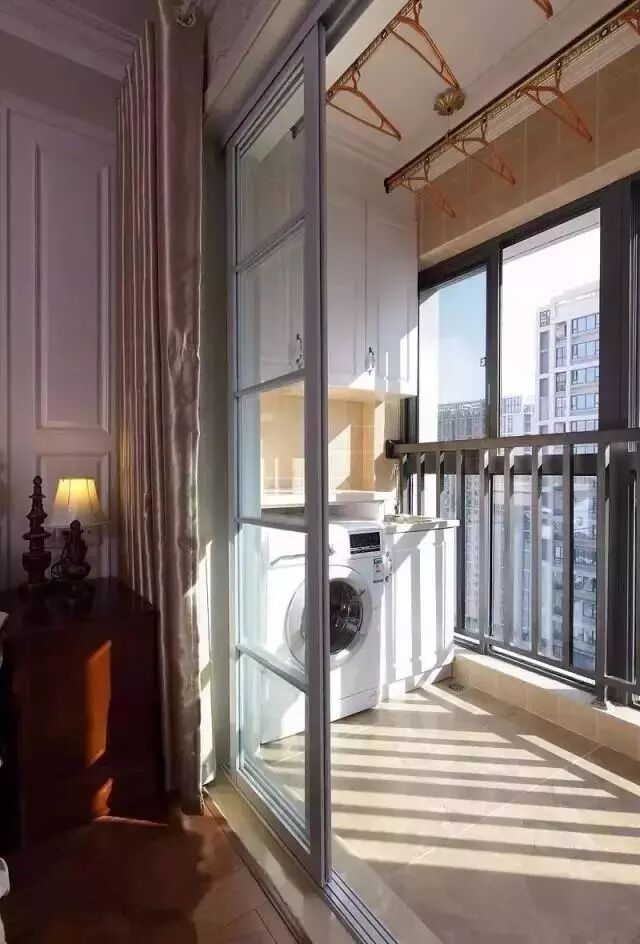 ● 装上推拉门,客厅与阳台形成两个不同区域的空间,阳台用来晒衣服也不会影响美观。