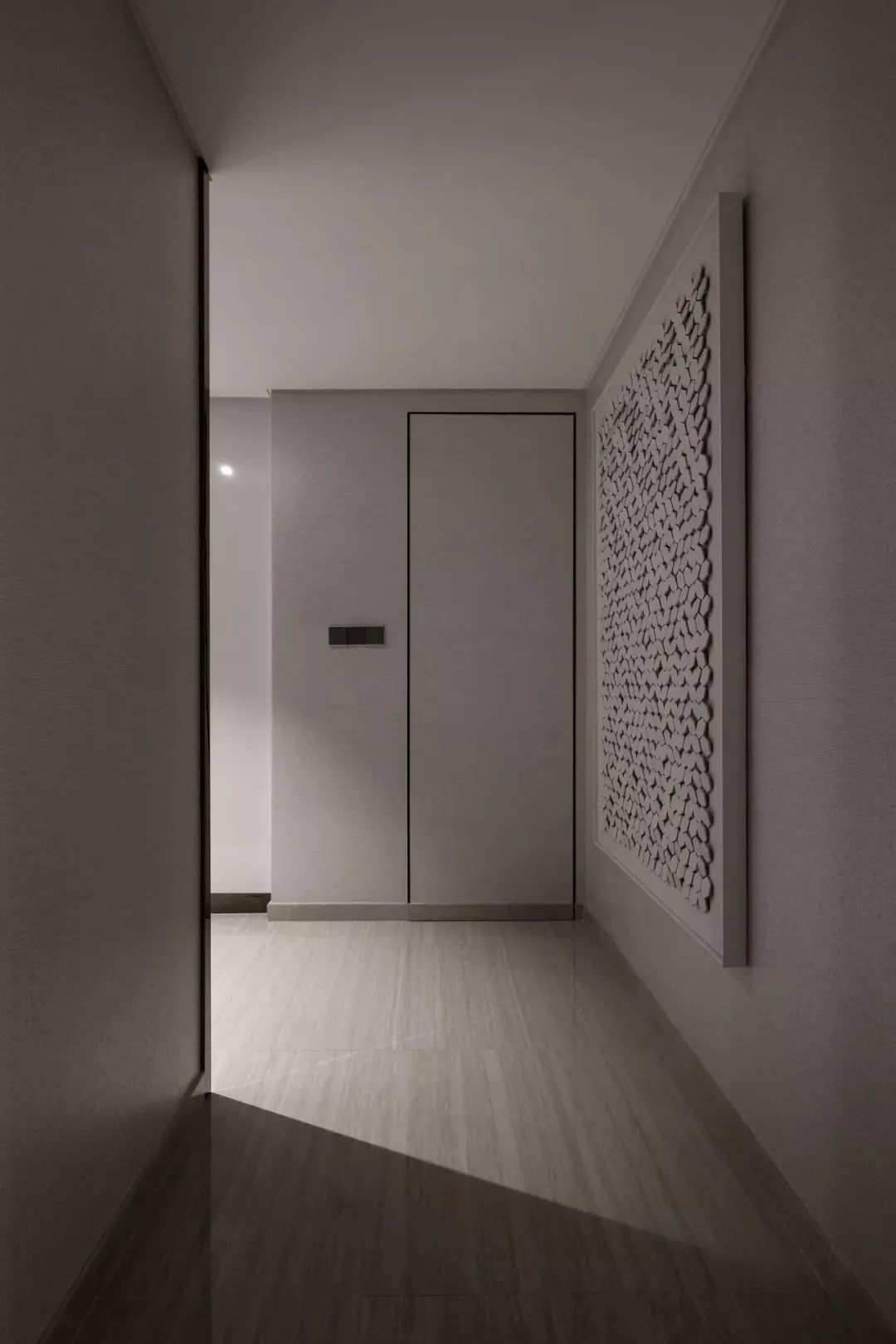 让门隐形的最好方法就是让门与墙融为一体,关键点在于不能有门套和门板的材质和墙面完全一样。这样的“隐形门”,不仅最简单、造价上面也是最便宜的,能够保证和墙面有一定的视觉统一感。