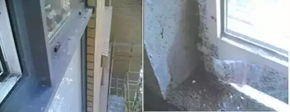 通病6:外窗塞缝发泡胶外露,采用切割方式处理,破坏发泡胶外表层,造成渗漏隐患