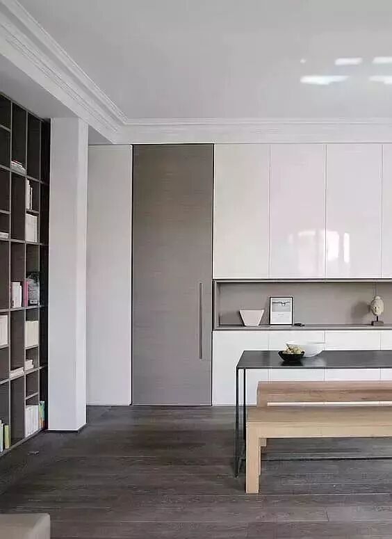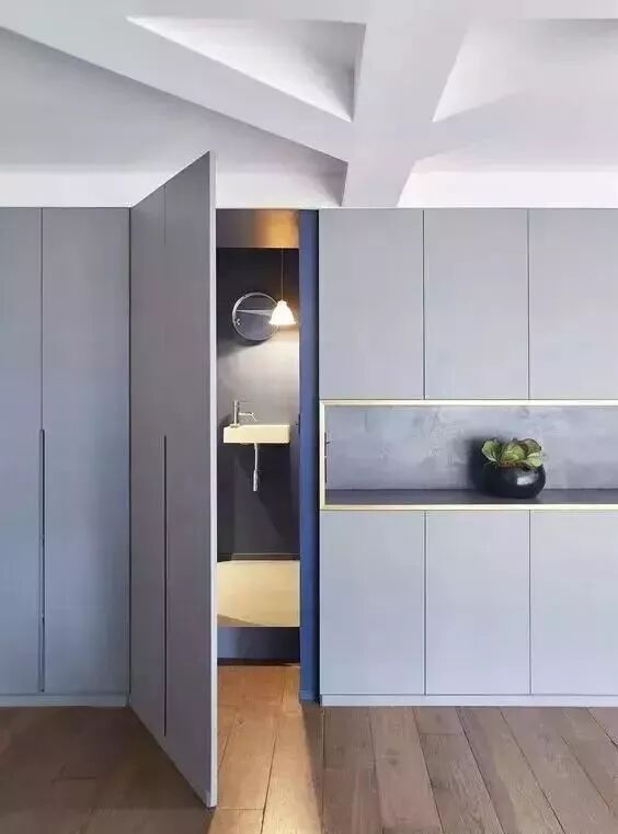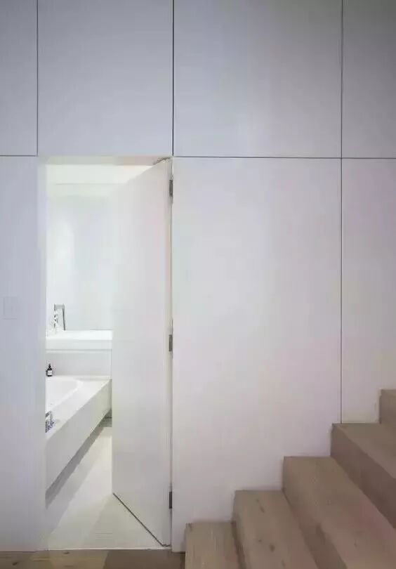 在风水学上卫生间门不管是直接对着大门、卧室门、厨房门甚至是客厅都是有所顾忌的,但是改造空间又特别麻烦,这个时候就不妨把卫生间门装成隐形门,有效的避免了各种尴尬哦。