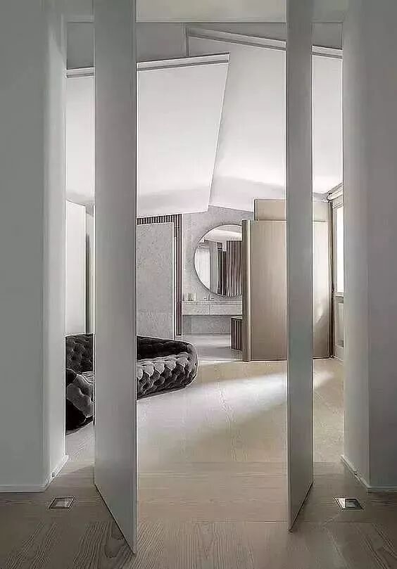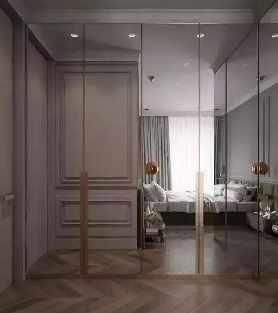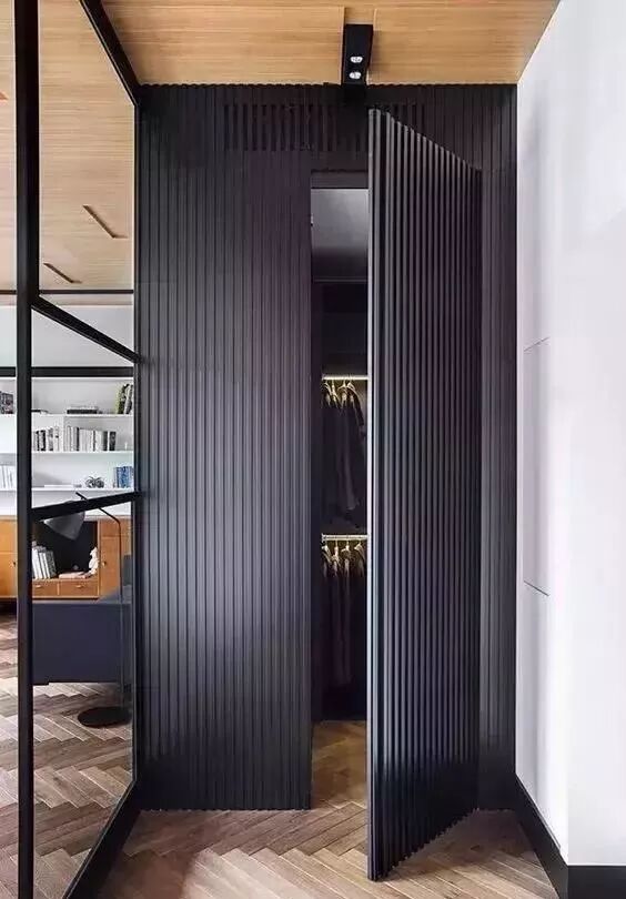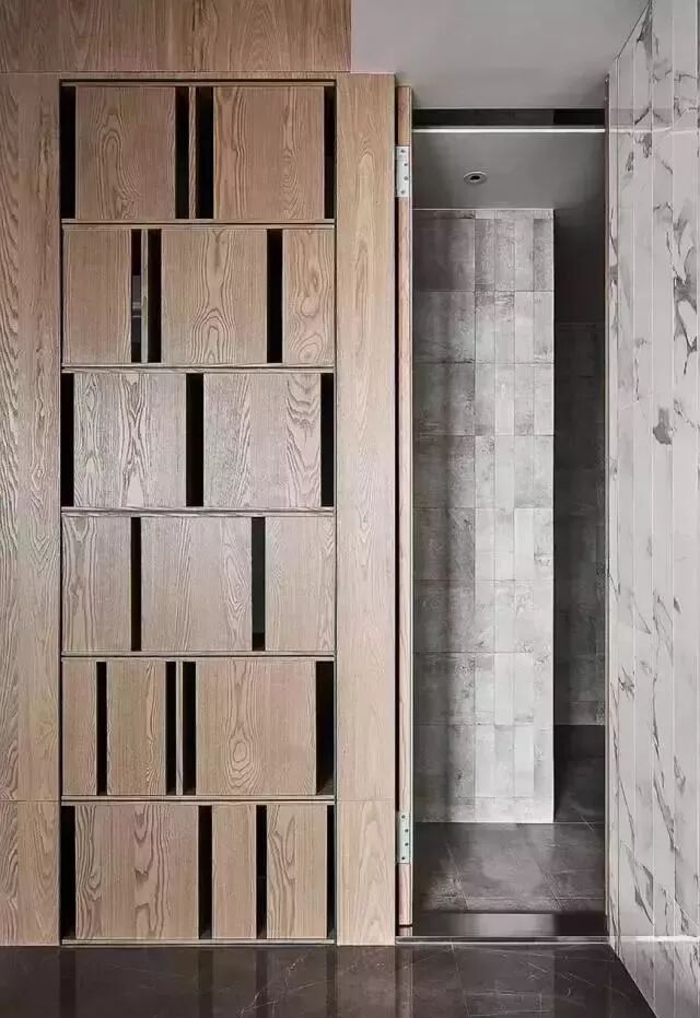 衣帽间、储物间等具有储藏功能的空间,是隐形门最常出现的地方。将它们的门和墙面融为一体,在空间视觉上,起到了很好的协调作用。