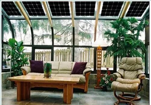 一、节约成本:由于阳光房的屋顶本身就是需要玻璃或者木质结构,如果采用光伏双玻组件代替,既节约了屋顶材料成本,还能产生一定的经济效益。自己发电自己用,省去一笔空调费用,这是传统降温方式所没有的。