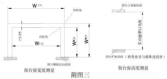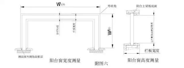 非常规阳台的具体测量部位及尺寸标注见附图七。