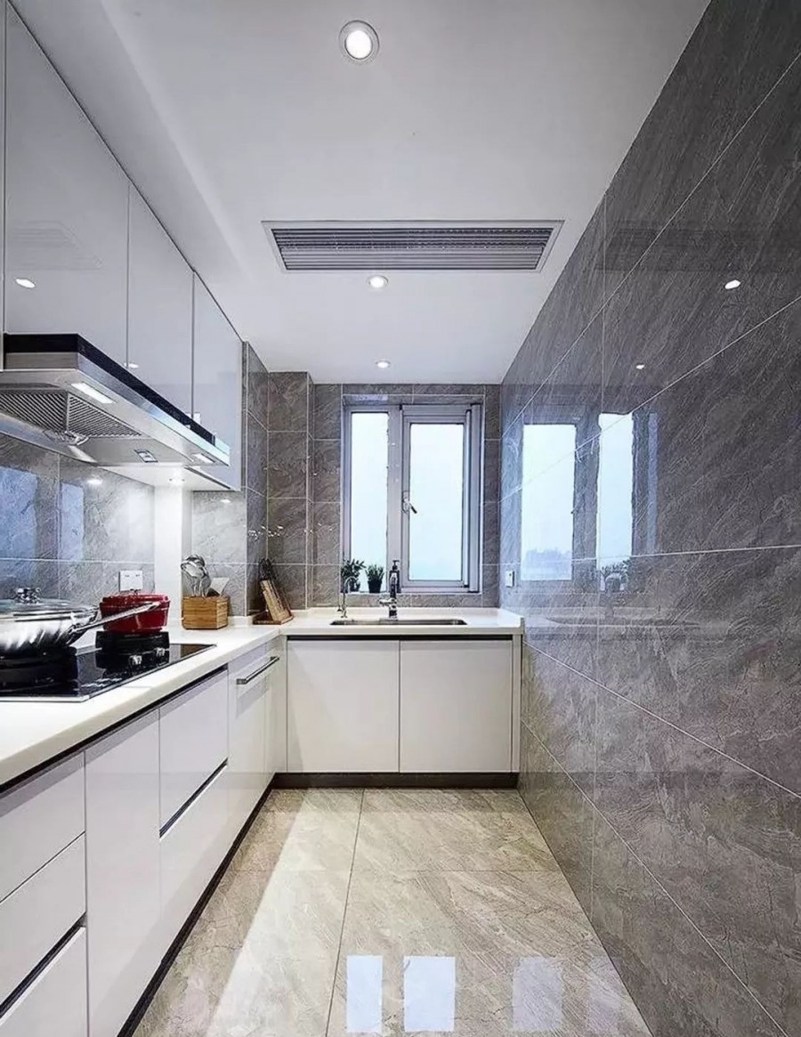 吊轨门的使用价值非常高,吊轨门也是轨道拖动工作的,与推拉门的工作原理很相似。但是吊轨门它的轨道在门的上端,推拉的时候也是非常灵活的。平日里用的时候,根本不用担心油烟会粘到轨道上,而且简单的打理就会变得很干净。吊轨门,它还有一个好处就是密封比较严实,可以抵挡厨房的油烟不向外流。其他屋子就不会受到油烟入侵,油烟味也不会流得满屋子都是。