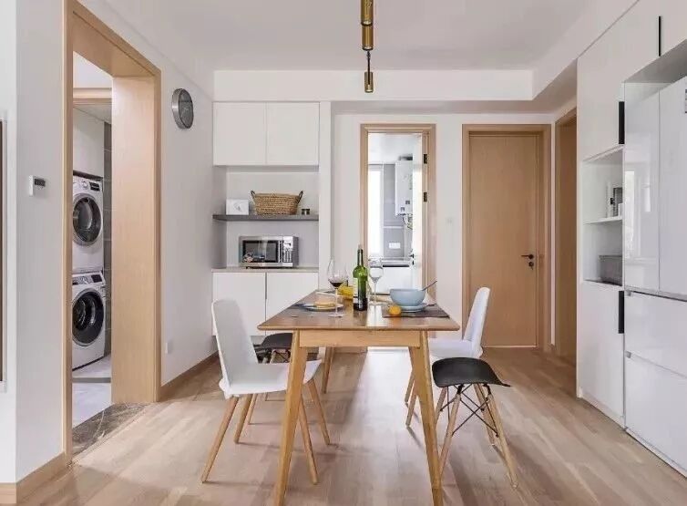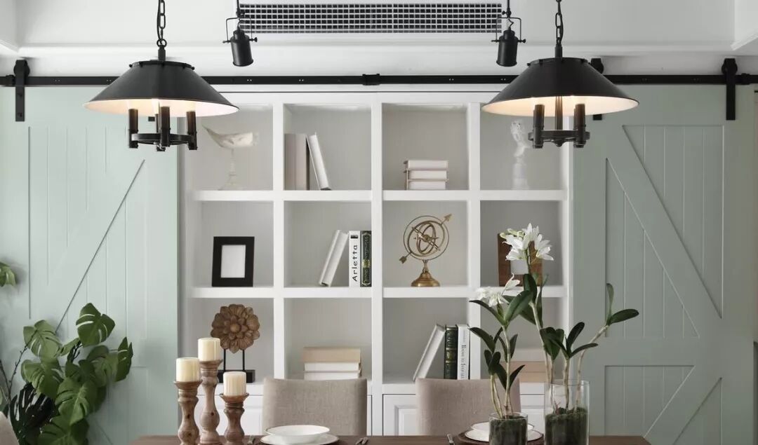 集颜值和功能于一身的谷仓门是隔断神器,不仅看起来特别,实用性也很强。但是,谷仓门是吊轨门,在安装的时候会和墙面留出1cm以上的缝隙,所以适合非密闭性,或对隔音性、安全性要求不那么高的场所,比如说厨房、储藏室、洗衣房、衣帽间等空间。