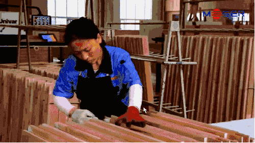 使用进口自动打钉机,根据不同硬度的木材调节打钉力度,出钉力度均匀。